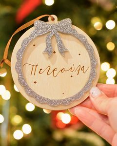 Ξύλινο χριστουγεννιάτικο στολίδι με χαραγμένο όνομα και glitter plexiglass. Ένα ξεχωριστό δώρο που κρατάει την μαγεία των Χριστουγέννων όλο το χρόνο.